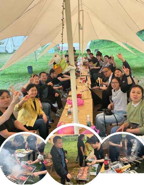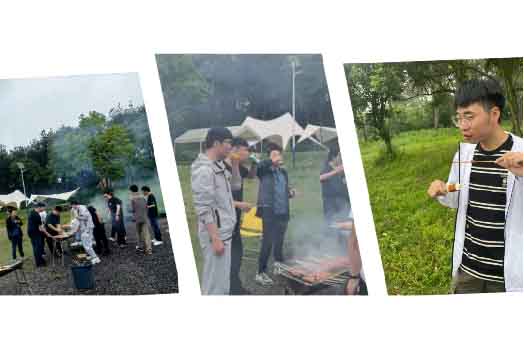 山野之間的人間煙火氣,最撫凡人心。團建最不能缺少的,當然就是美食和燒烤啦!公司商務部準備好了充足的水果、零食、飲料、啤酒等,下午13時,大家在草地天幕下分別圍坐一起進行自助烤肉,伴隨著炭火燃起的火焰,燒烤產生的香味溢滿四周,感情在一串二刷三烤中一并升溫。桌上的美食讓人垂涎欲滴,大家一邊享受美食,一邊暢聊生活趣事,卸下所有的煩惱和疲憊,盡情暢聊,盡情歡笑,其樂融融。