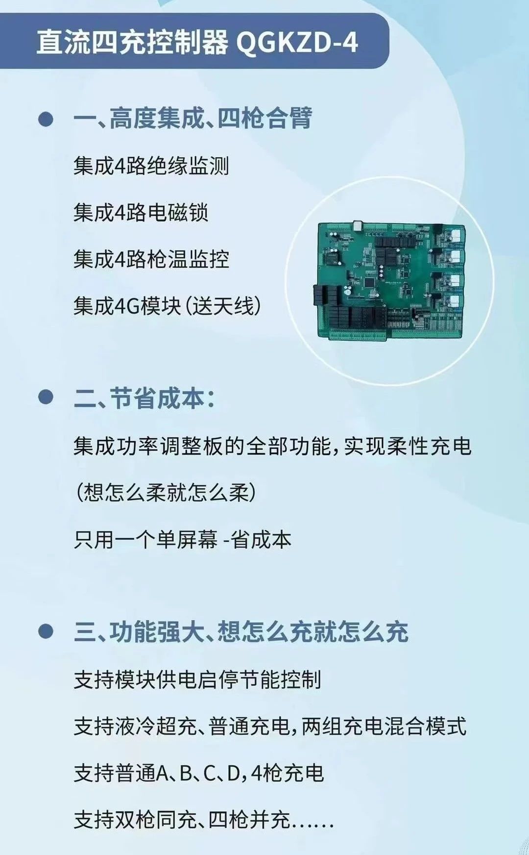 在新能源汽車產業蓬勃發展之際,合肥乾谷新能源技術有限公司推出的QGKZD-4直流四充控制器以其卓越的性能和創新的技術,為充電站運營商和生產商帶來了前所未有的解決方案。這一產品不僅體現了公司在新能源汽車充電樁技術領域的領先地位,更是對未來充電市場趨勢的一種前瞻性布局。