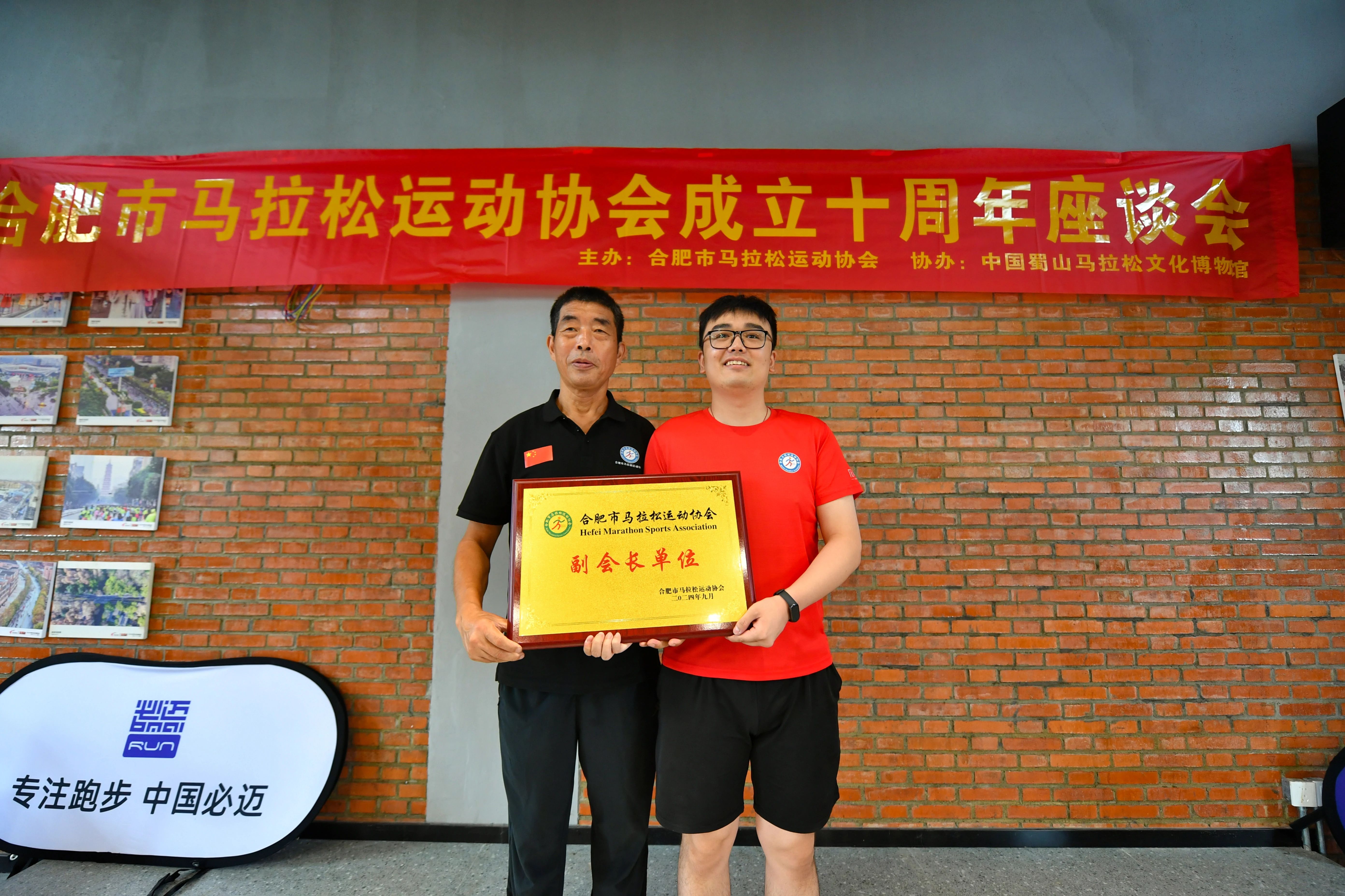 合肥市馬拉松運動協會會長魏普龍先生為我司授牌(合肥馬協供圖)