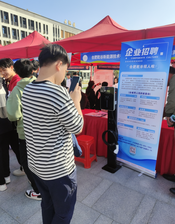 為廣納賢才、促進就業(yè),合肥乾谷新能源集團積極參與此次校招會。招生團隊創(chuàng)意十足,攜帶小型交流充電樁現(xiàn)身現(xiàn)場,為同學(xué)們展開實物講解。精彩的講解吸引眾多大學(xué)生駐足聆聽、觀看、拍照并積極咨詢,現(xiàn)場氣氛十分熱烈。汽機系、管理工程系、軟件工程、土木工程等眾多專業(yè)的同學(xué)紛紛被本集團的專業(yè)實力與創(chuàng)新理念折服。不少同學(xué)滿懷憧憬地遞上個人簡歷,熱切咨詢崗位信息,表達強烈的應(yīng)聘意愿后,滿意而歸。團隊人員還詳細介紹了充電樁未來行業(yè)動態(tài)以及廣闊的就業(yè)前景。據(jù)悉,此次校招合肥乾谷新能源集團收獲上百份簡歷。接下來,公司人事部門將逐一仔細分析學(xué)生簡歷,通過電話溝通進行嚴格篩選,并邀請合適人才前往公司參觀、面試。