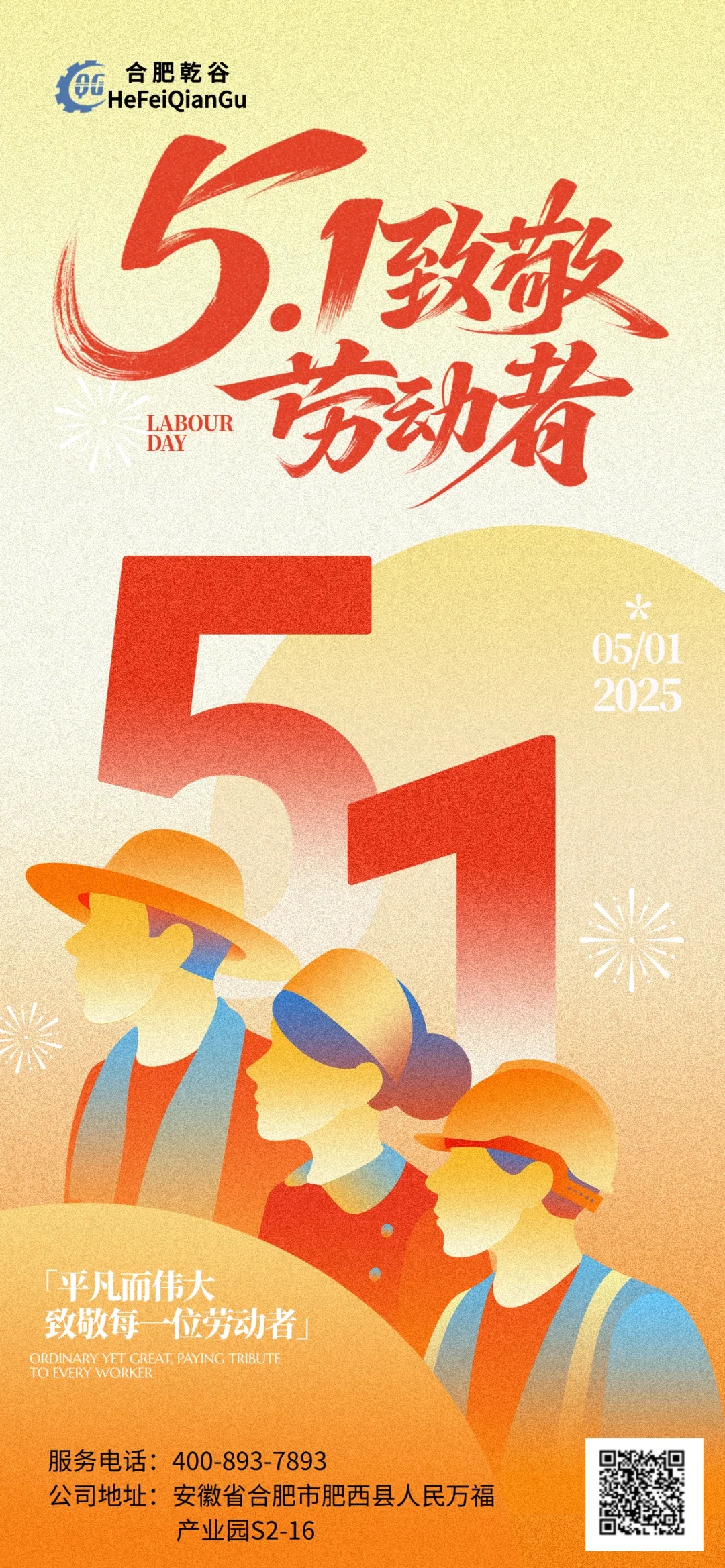 ╔ 勞 ╗??勞動創造價值?? ║ 動 ║??服務賦美生活? ╚ 節 ╝??締造幸福未來 ??致敬每一位辛勤的勞動者 ??——— ??合肥乾谷新能源技術有限公司??